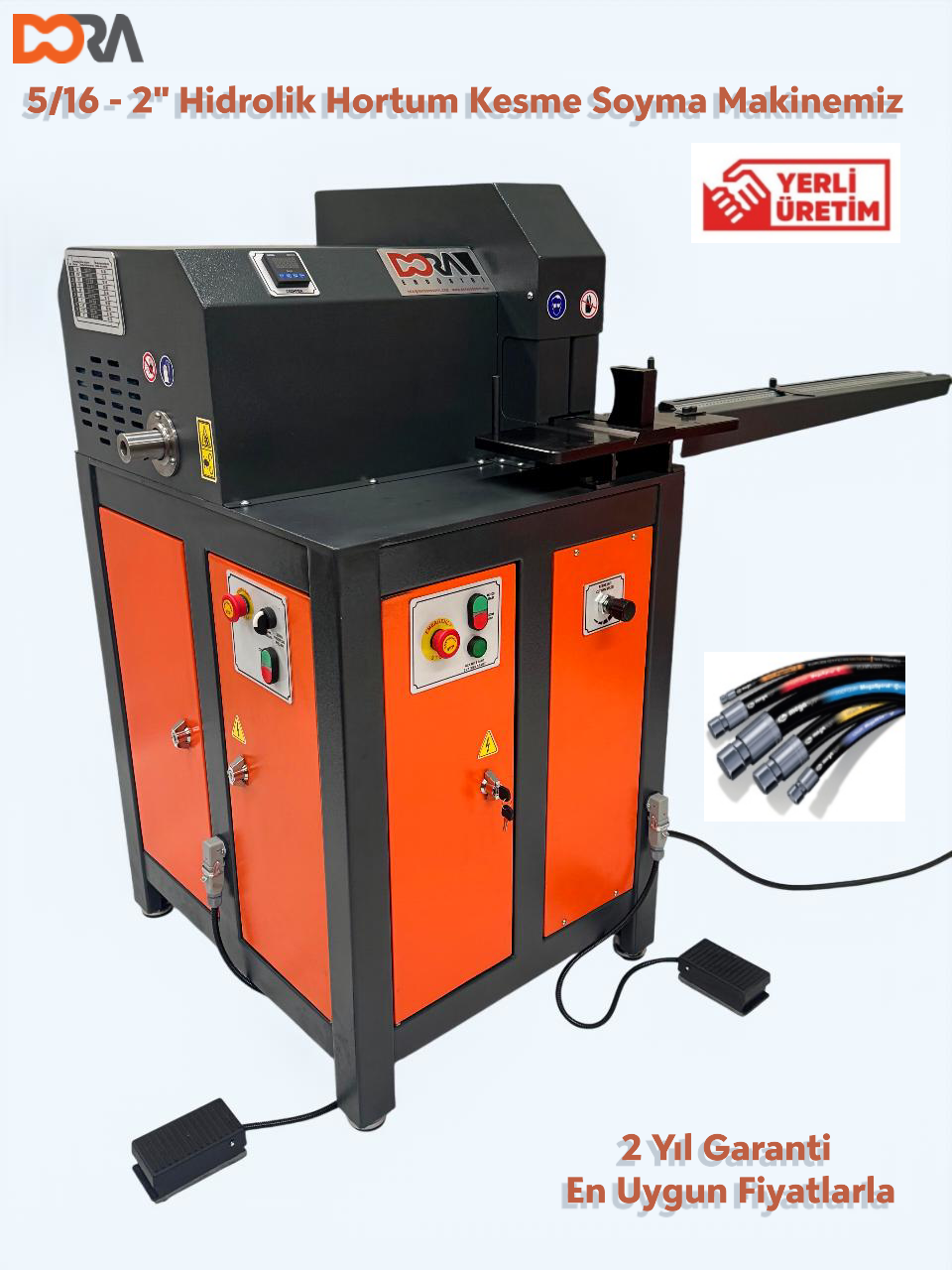 Hortum kesme ve soyma makinası verimli, hızlı ve güvenli bir şekilde, 2"(6 spiralli) ve 3"(2 spiralli) çapına kadar hortum kesmek ve 2" a kadar hortum soymak için tasarlanmıştır.